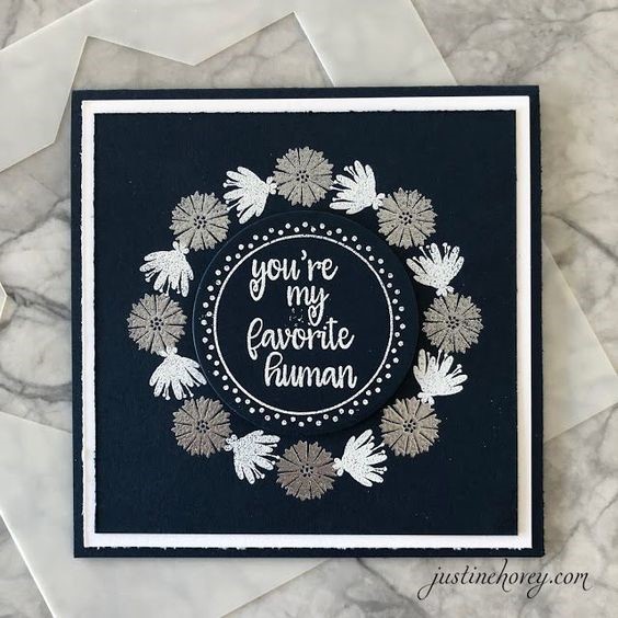 If you want to come up with a card design idea that’s really striking, there’s nothing quite as bold as black and white. Sure to stand out on any shelf, a black background with white text and patterns is essentially the opposite of most greetings card designs, but there’s no doubt it oozes class and sophistication.
