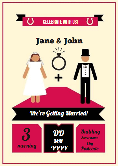 Ready for a really quick win? Use a free wedding invitation design template! A lot cheaper than hiring a graphic designer to make your invites, our free templates are all created in-house by a professional designer, using knowledge of the latest wedding trends to create perfect print for everyone.