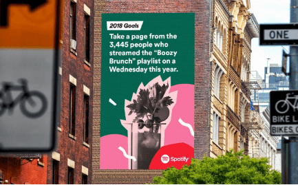 Using humour to grab attention, Spotify’s 2017 end of the year campaign, ‘2018 Goals’ featured over 70 artists! How did they make sure their print marketing would be seen? They went BIG.