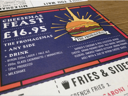 Cheesemas is incorporated into all of the restaurants’ branding – from menus to coasters. But our favourite Cheesemas print marketing tools have to be these placemat menus and A-frames!