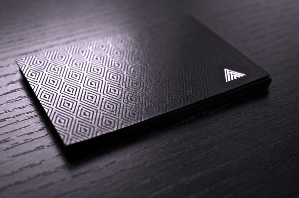 Another company card idea is to change the edge completely. Great for showing your creative side, rounded corners are sure to get your business noticed. They’re alternative without being too show-y and over the top! We particularly like game developer Dave Makes’ business cards – the rounded corners combined with spot UV to create a pixel effect gives it a really modern feel: the perfect marketing tool for a game developer to reach out to their target audience!