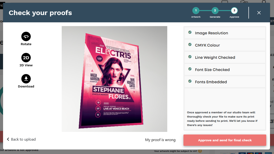 You’ll get a digital proof showing exactly how your final print will look. This is your chance to make sure everything is spot on - layout, colour, text placement - before you hit print.