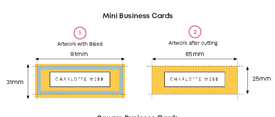 For mini business cards, the sizes are as follows: