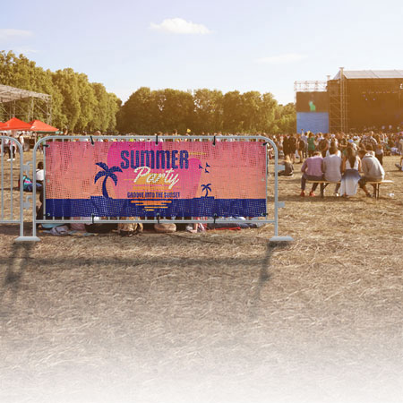 Turn your crowd control barriers into a dynamic branding opportunity with our Crowd Barrier Fence Covers. Custom-designed to fit standard crowd fencing, these premium covers provide a sleek and professional way to display your logo, promotional messaging, or important safety information while enhancing the look of any event or site.