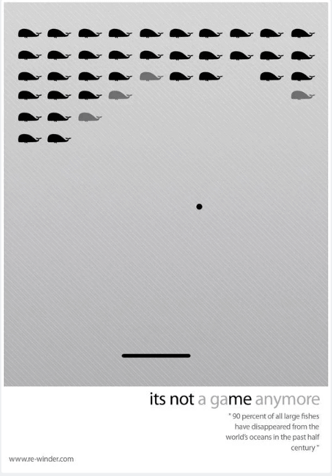 We think the whitespace used in this Poster to highlight environmental degradation is particularly impactful. The design mimics popular classic video games such as Space Invaders to allude to the fact that we are responsible for the disappearance of large fish in our oceans. The whitespace used makes this even more thought-provoking because it’s very obvious that something is missing – and even though there’s nothing there, this speaks volumes.
