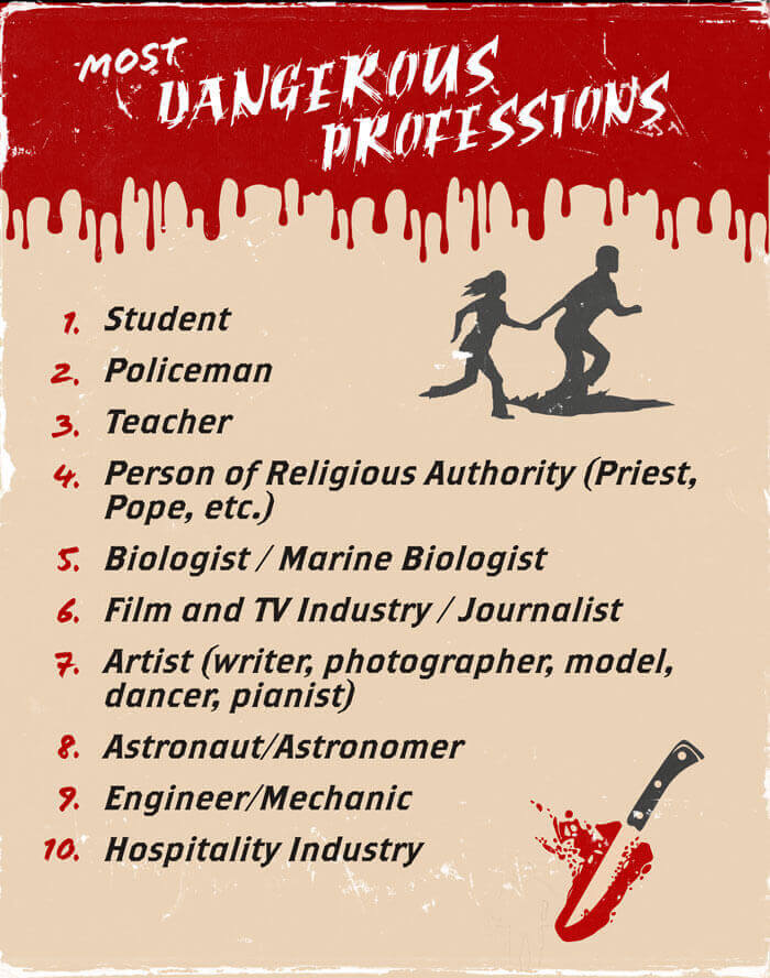 If you’re in a horror movie and you find yourself in one of these jobs, you’d better watch your back…