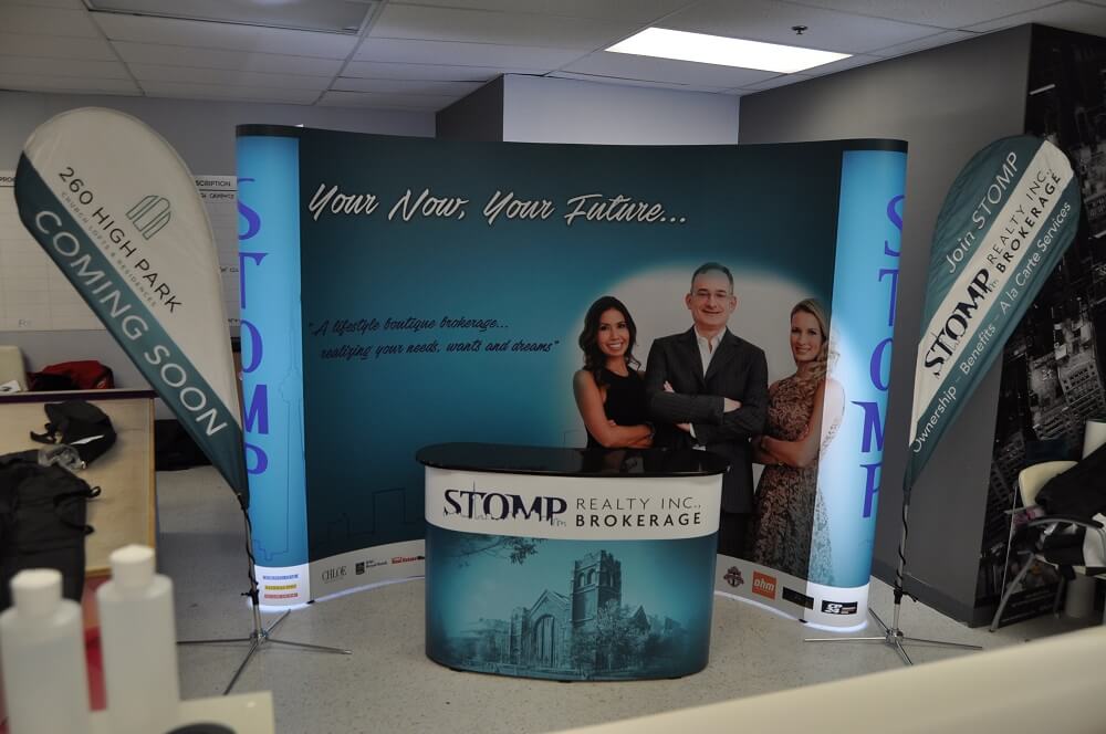 Or, if you’d prefer to appeal to those in the more immediate vicinity, a smaller Flag, at eye-level, can have just as big of an impact on those passing by your stand. Either way, the amount of people who are exposed to your business through the use of custom Flags makes them a rewarding, yet cost-effective, way of getting noticed.