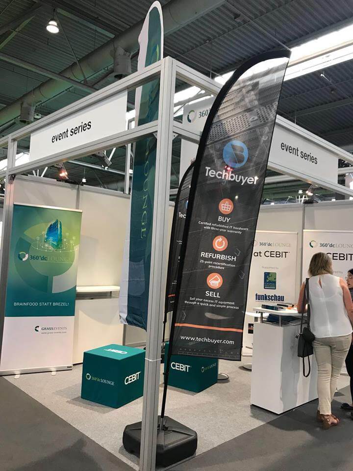 Techbuyer, global specialists in the buying, refurbishing and selling of IT equipment, recently used our Feather Flags at CeBIT 2018 – Europe’s Business Festival for Innovation and Digitalization in Hanover, Germany. Here’s what Helen Blakely, their Marketing Manager, had to say about their experience of using Flags at this event: