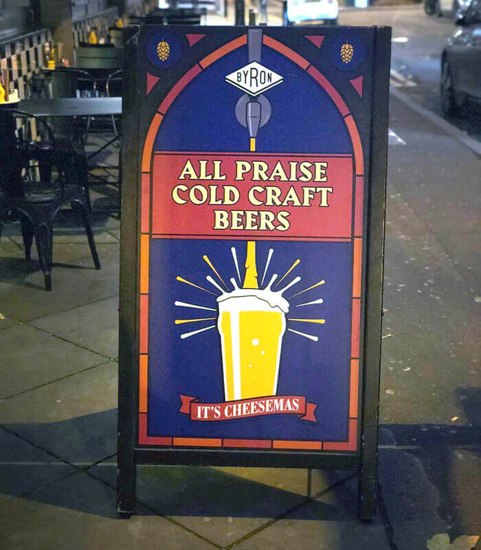 Cheesemas is incorporated into all of the restaurants’ branding – from menus to coasters. But our favourite Cheesemas print marketing tools have to be these placemat menus and A-frames!