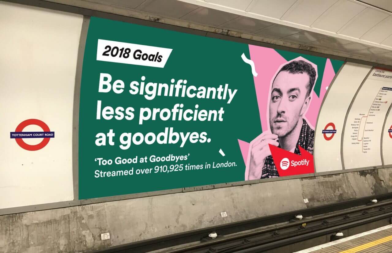 Using humour to grab attention, Spotify’s 2017 end of the year campaign, ‘2018 Goals’ featured over 70 artists! How did they make sure their print marketing would be seen? They went BIG.