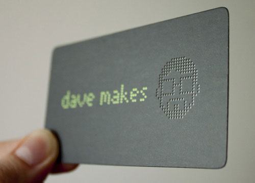 Another company card idea is to change the edge completely. Great for showing your creative side, rounded corners are sure to get your business noticed. They’re alternative without being too show-y and over the top! We particularly like game developer Dave Makes’ business cards – the rounded corners combined with spot UV to create a pixel effect gives it a really modern feel: the perfect marketing tool for a game developer to reach out to their target audience!
