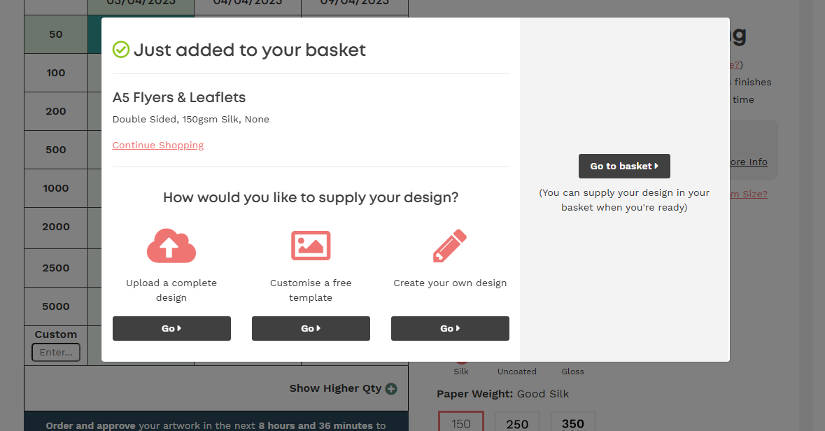 This option is ideal if you’re waiting on sign-off, still designing, or just want to lock in your order early.