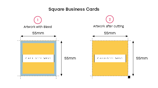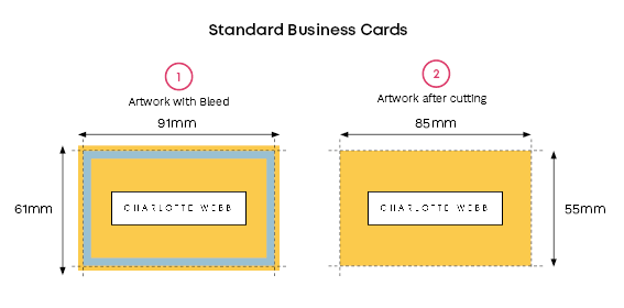 Both our premium and economy business cards are standard size: 85 x 55mm. However, you’ll need to add 6mm on for bleed. The size with bleed is 91 x 61mm.