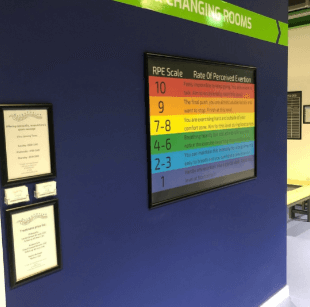 We have a variety of printed posters throughout the studio, From A0 - A4 in size as well as a number of banners. These enable us to promote our class timetable for instance and other key fitness instructions.