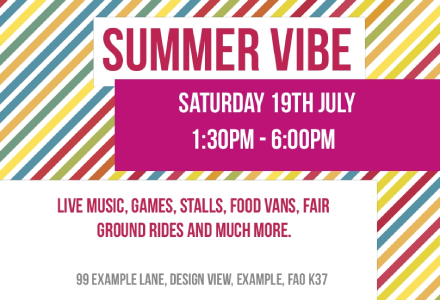 You can change colours, add backgrounds and images and even upload your logo design. Type straight into textboxes to place text on your design.