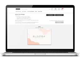 When you've finished designing online, you'll be shown a proof. This is what your design will look like when it's printed. Make sure that important information is away from the outer edge and that everything is correct before approving for print.