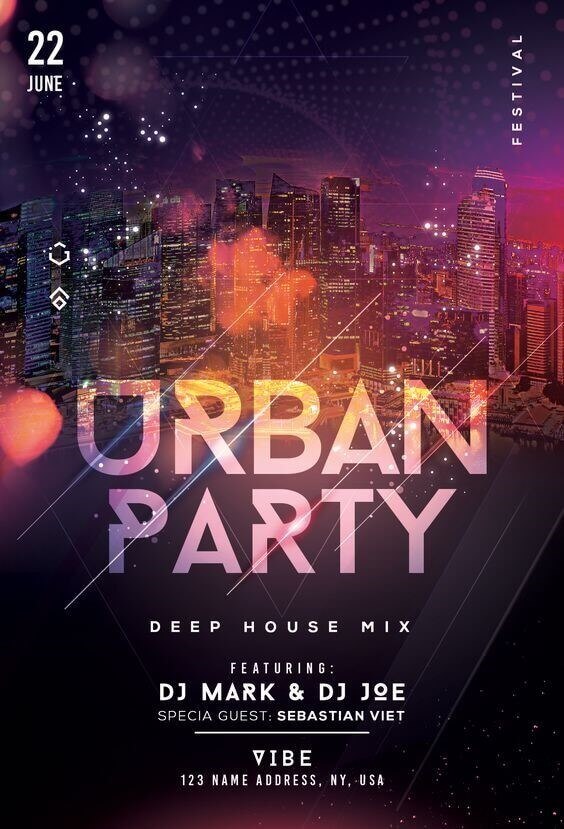 If you are going for an 80s or 90s club event, stick to flat shapes and colours because that’ll give your club flyer design a true retro feel. Just remember to keep them bright and your flyer will still stand out.